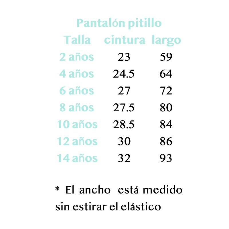 Tabla de medidas en la última foto.