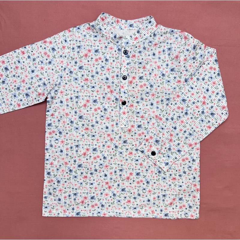 100% algodón.  Cuello ajustable con elastico de ojal.