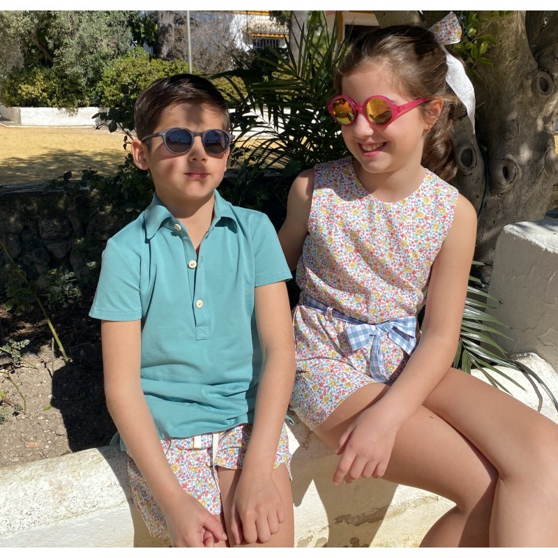 100% algodón.  Cuello ajustable con elastico de ojal.