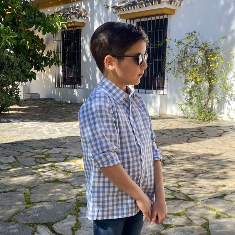 100% algodón.  Cuello ajustable con elastico de ojal.